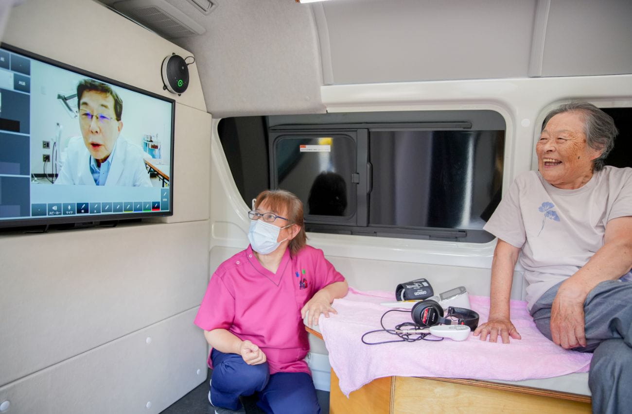 単独の高齢者世帯や中山間地域が多い山梨市では、年間5,000件以上の訪問診療に取り組んでおり、充実した在宅医療が強みとなっています。医療圏の訪問診療のうち、約42%は牧丘病院が実施しており、今回、在宅医療の強化と医師の負担減を目指しメディカルムーバーを導入しました。現在、オンライン訪問診療のスタートに向けて、様々な準備を行っています。