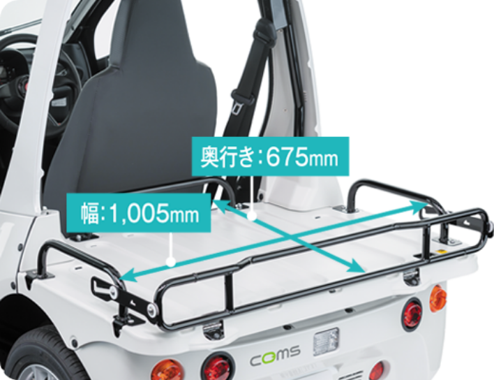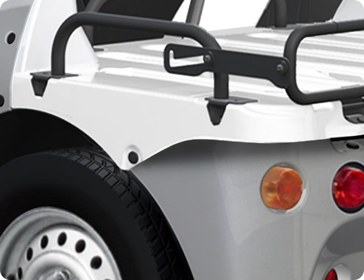 大きめの荷物も積める荷台を装備。段ボールや高さのある物も運ぶことができます。自分好みのトランクボックスやクーラーボックスを積むことができ、業務用の道具や商品を整理して運ぶことができます。