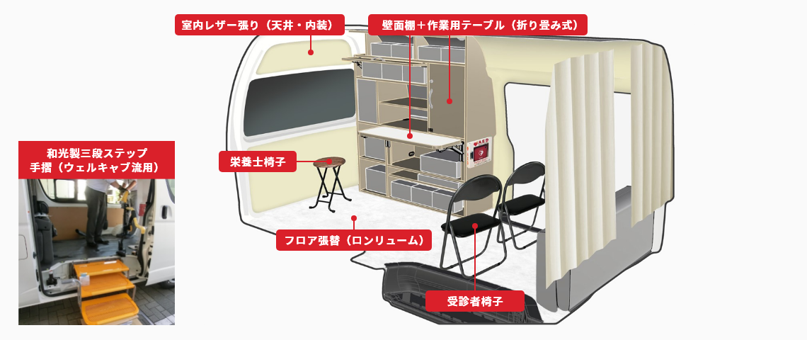 イベントやコンビニへ行ったついでに気軽に立ち寄りヘルスチェックを行える車両です。